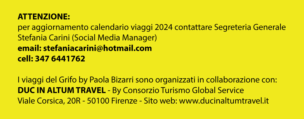 Sapere che il viaggio al quale siamo chiamati in questa vita, cioè la nostra RICERCA PERSONALE, è un percorso realmente da seguire, significa potersi rinnovare ogni giorno. La ricerca comporta il muoversi, viaggiare, andare, scoprire e peregrinare… si tratta di una ricerca attiva, che non si limita a ricercare informazioni soltanto da un libro o da un sito internet. La mia ricerca va oltre, poiché ha sempre a che fare con un VIAGGIO ed un’esperienza. Tale viaggio, oltre le meraviglie naturalistiche, culturali, e artistiche che permette di scoprire parti del mondo ancora ai nostri occhi sconosciute, ha lo scopo di far fare ai partecipanti anche un altro viaggio : un viaggio interiore, dentro parti ancora sconosciute di se stessi, per alimentare la pace, la gioia e la felicità, dentro e fuori di noi. I viaggi che propongo, dunque, sono quasi sempre viaggi di gruppo, dove si condivide tutto !! I particolari ed i dettagli dei programmi, solitamente non vengono specificati prima della partenza, perché devono essere una sorpresa da vivere sul posto, bisogna sapersi affidare, bisogna saper accogliere la proposta e VIVERLA PIENAMENTE, fino in fondo, lasciandosi andare …. Inoltre, gli itinerari hanno la peculiarità di essere fuori dalle classiche rotte turistiche più conosciute, e quasi sempre i programmi sono costruiti su misura, per la buona riuscita dell’INTENTO stesso del viaggio. Questo favorirà l’aggregazione del gruppo, la curiosità e soprattutto il desiderio di stare insieme, per scoprire e fare esperienze UNICHE ed INDIMENTICABILI.
